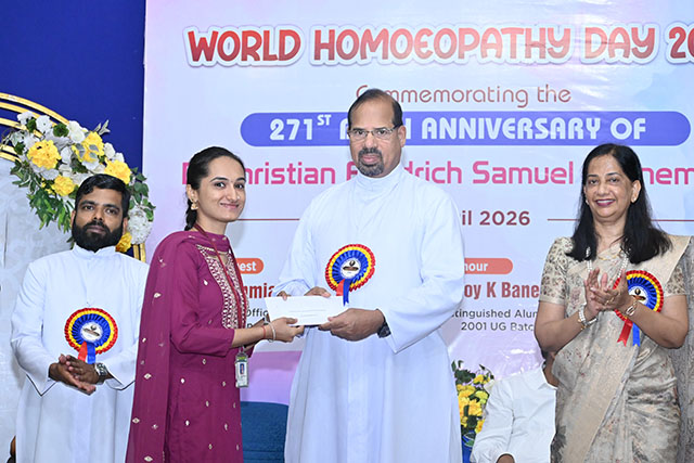 As part of the celebrations, prizes were distributed to the winners of various competitions held in connection with World Homoeopathy Day 2026. Fr Donald Nilesh Crasta, administrator, presented the awards. Prizes were also distributed for the ‘Colours of Materia Medica’ competition organized by the department of Materia Medica, as well as for the model-making competition organized by the department of obstetrics and gynaecology on the occasion of International Women’s Day.