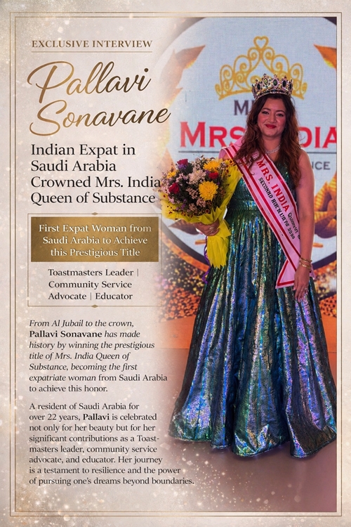 Jubail, Apr 28: In a proud and inspiring moment for the Indian community in the Kingdom of Saudi Arabia, Pallavi Sonavane, a resident of Jubail, has brought international recognition by winning a title at the prestigious Mrs India Queen of Substance 2026 pageant.
